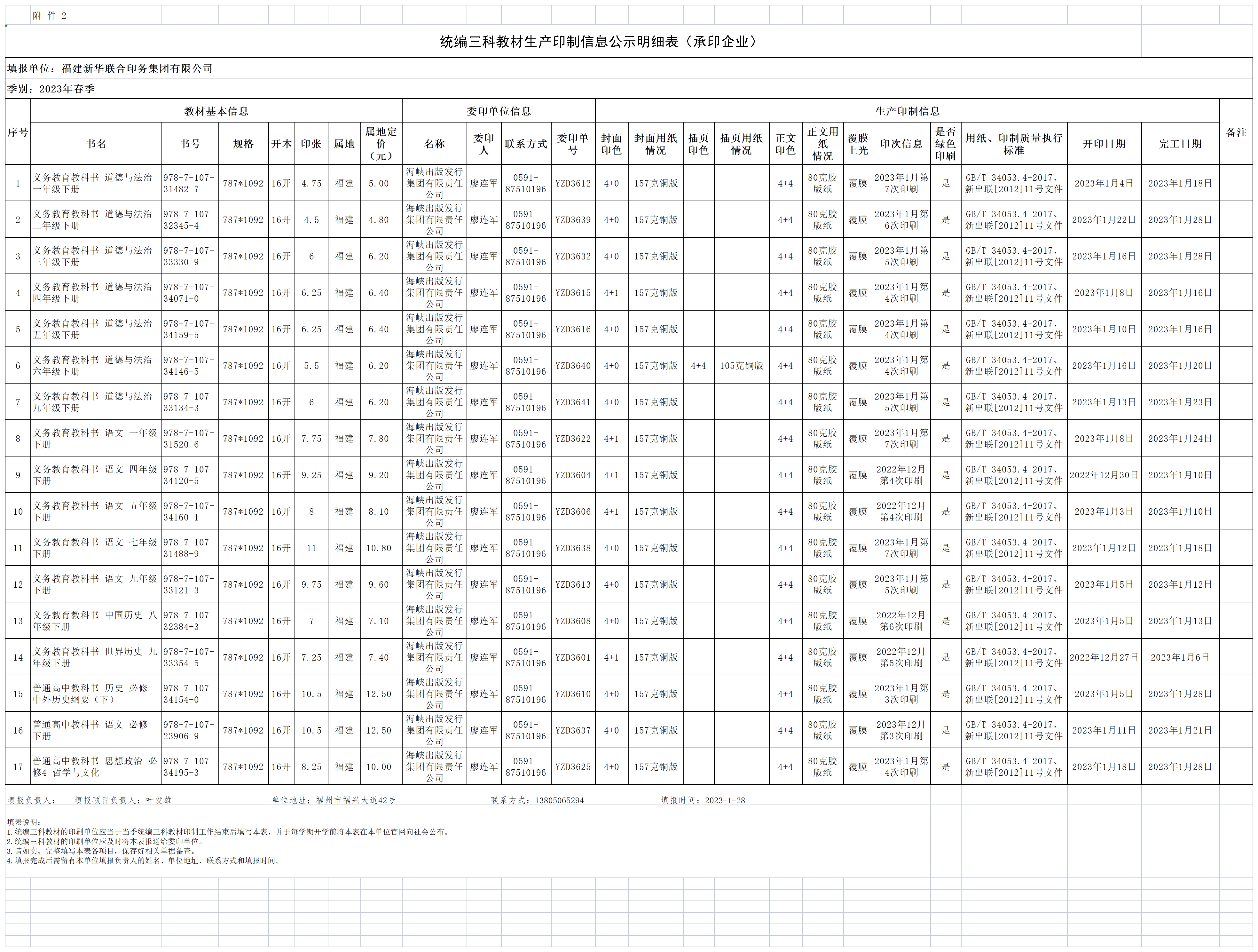 2023春聯(lian)合印務附(fu)件2統編三(san)科教材生(sheng)産印制信(xin)息明細表(biao)(承印企業(ye)填報).xls