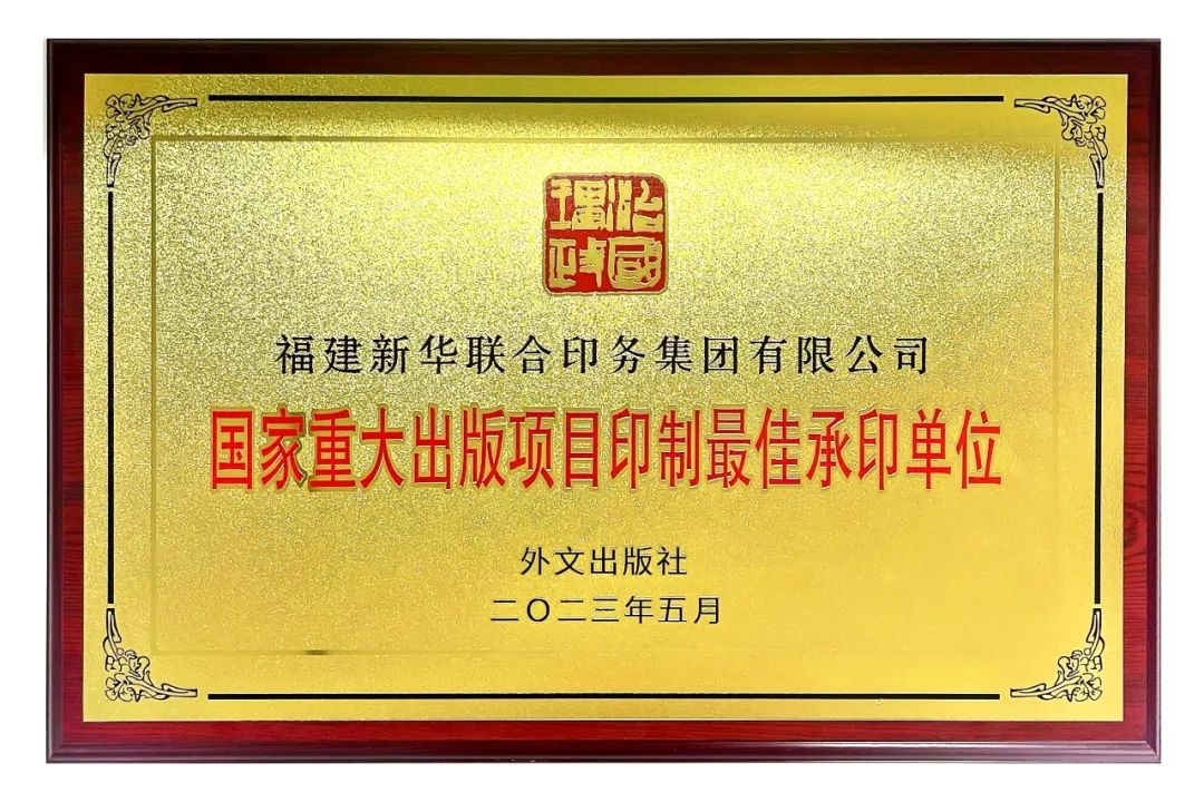 2025年11月22日,由(you)中國外文(wen)出版事業(ye)發行局外(wai)文出版社(she)主辦的國(guo)家😥重大出(chu)版項目印(yin)制工作總(zong)結懇談會(hui)在京召開(kai)。福建新華(hua)聯合印務(wu)集團榮獲(huo)“國家重大(da)出版項目(mu)印制最佳(jia)承👻印單位(wei)”稱号。